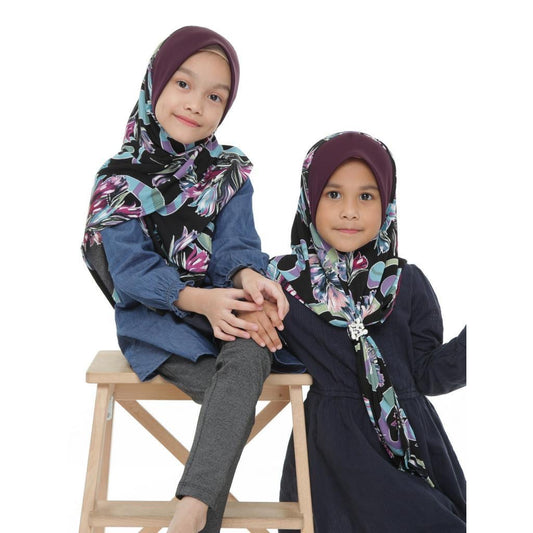 28 Tudung Instant Raisya Kids - Dark Blue L