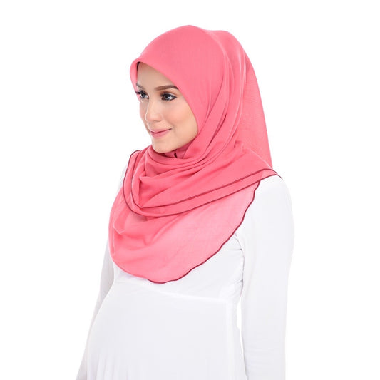 Tudung Bawal Maira Ruffle - Coral Blush