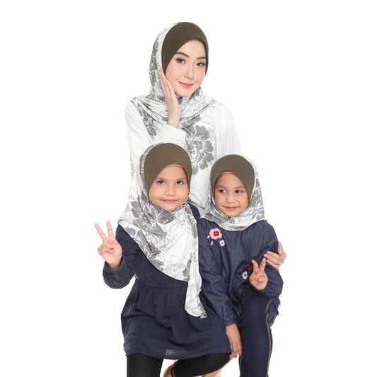 13 Tudung Instant Raisya Kids - Sage Peonies L