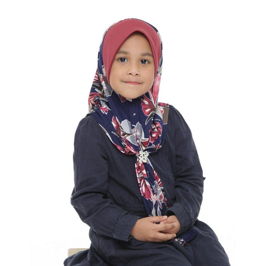 28 Tudung Instant Raisya Kids - Dark Blue L